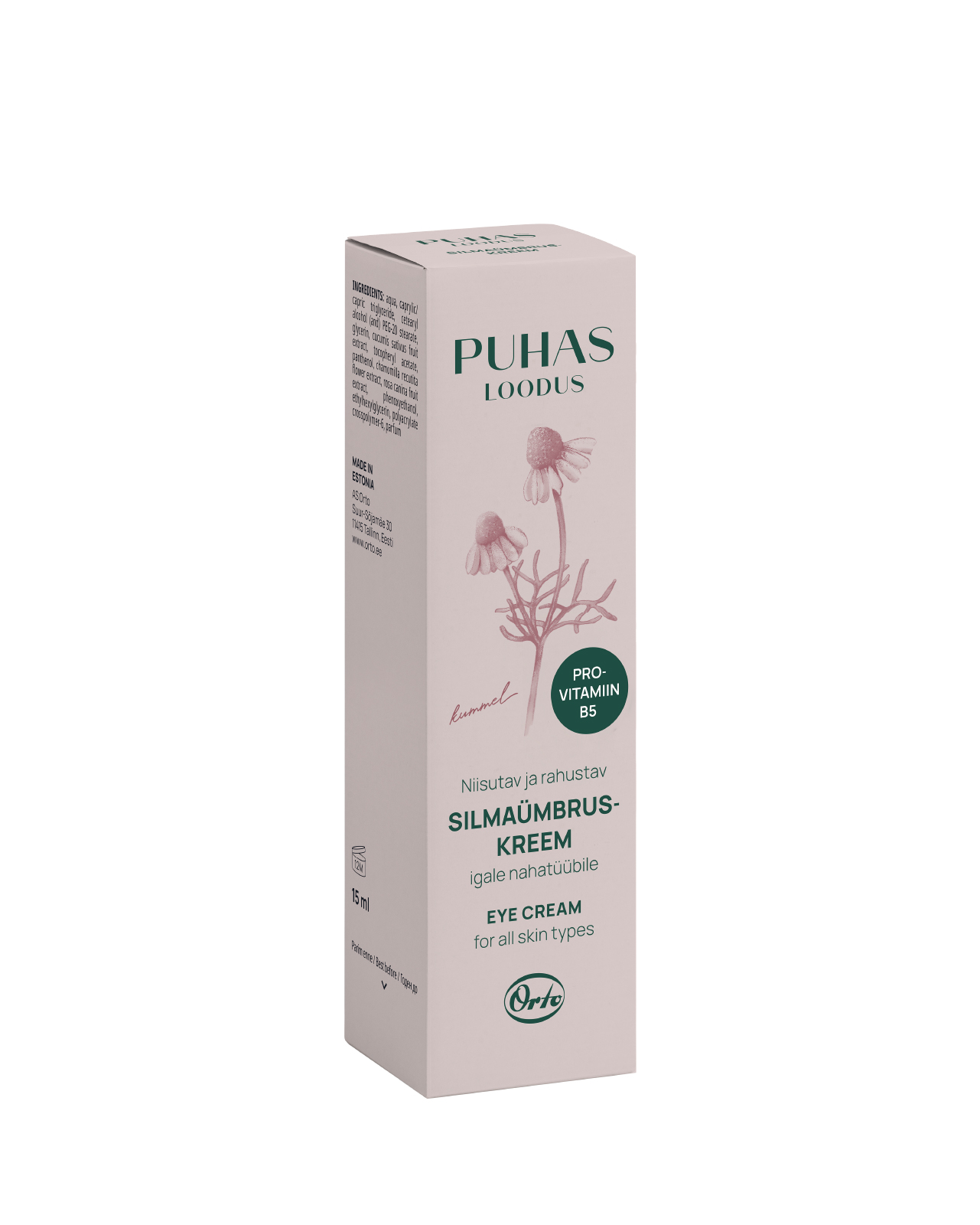 Moisturising and soothing eye cream with chamomile extract for all skin types. Chamomile and cucumber extracts and panthenol moisturise, soothe and strengthen the skin. The complex of vitamin C found in rosehip extract and vitamin E slows down premature aging of the skin.