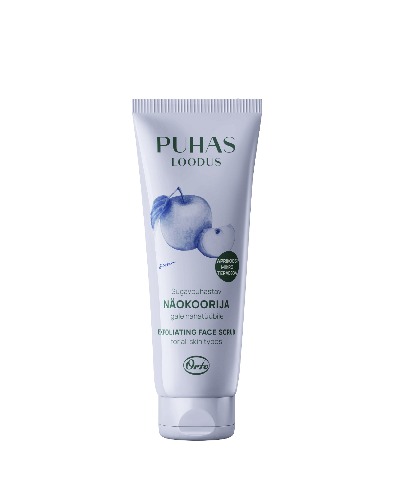 Exfoliating face scrub with microbeads for all skin types. Apple extract, allantoin and apricot microbeads remove dirt from the skin, stimulate microcirculation and the creation of new cells and make the skin receptive to nourishing creams